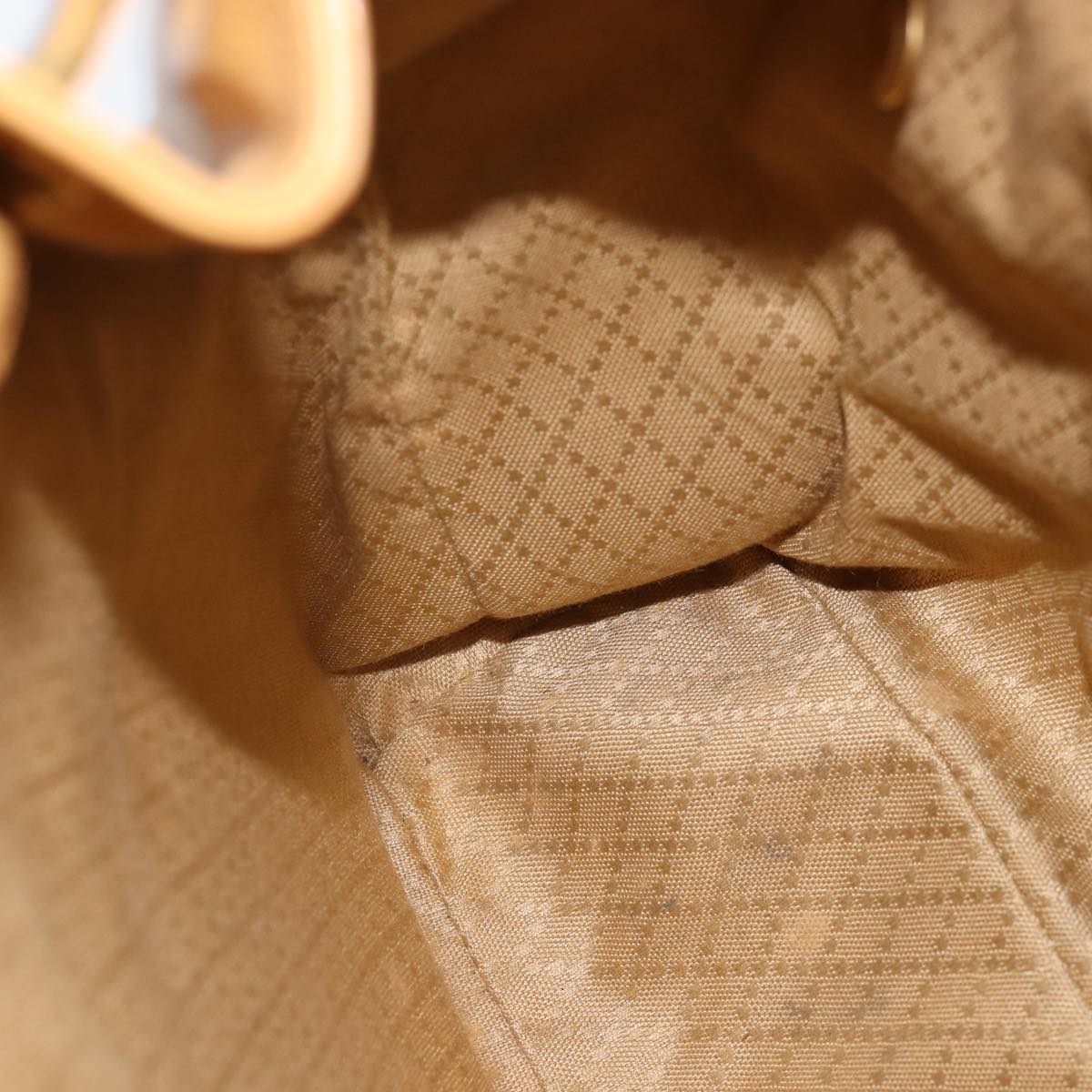 Outside, the surface of the backpack shows signs of use, including out-of-shape areas, rubbing, and slight stains. The shoulder straps exhibit rubbing, loss of shape, and partial staining. The handle also shows rubbing, while the metal fittings have visible scratches. Inside, the corners and pockets exhibit some rubbing. There is a noticeable storage smell present.