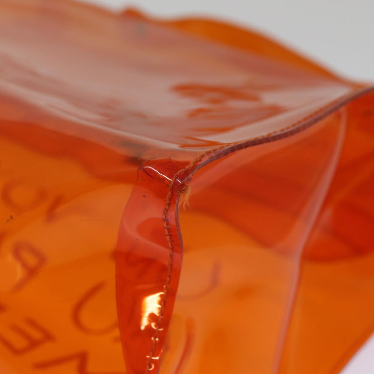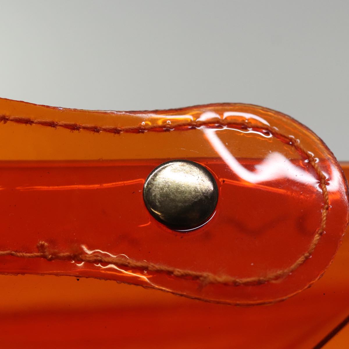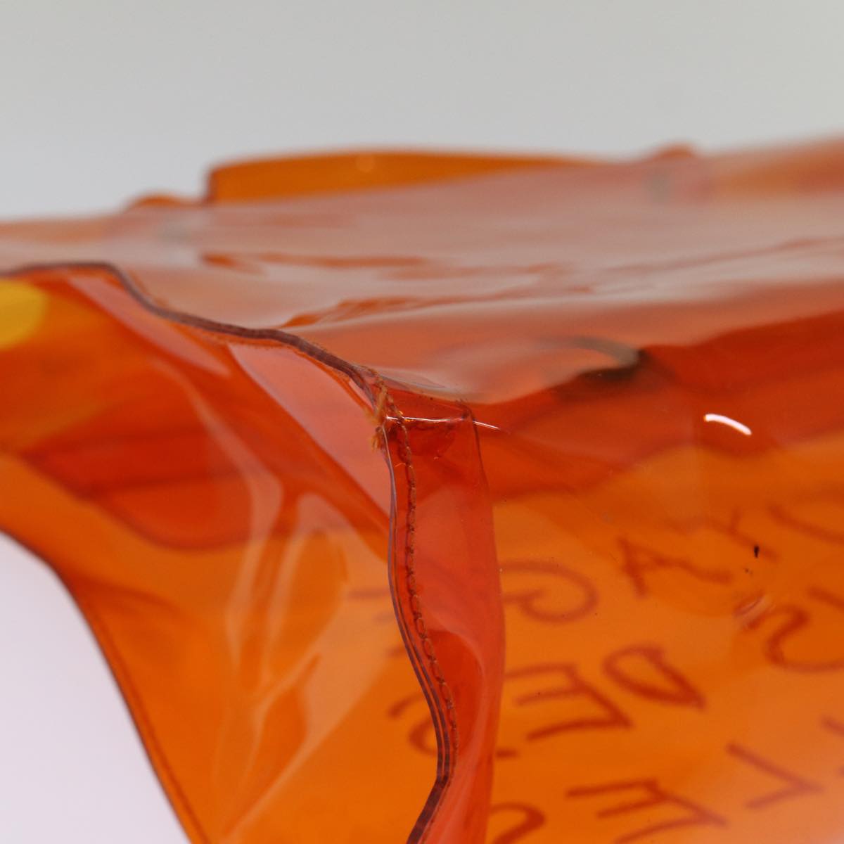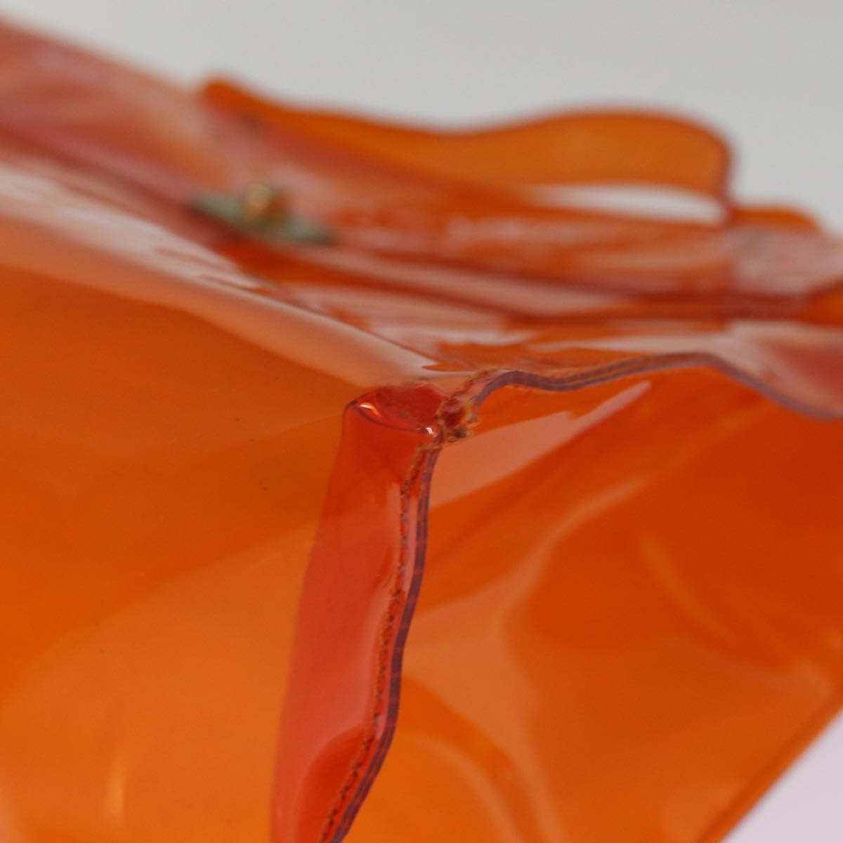 The exterior surface has lost its shape, with rubbing and slight staining evident. The handle shows slight rubbing and also has lost its shape. Metal fittings display scratches and some paint is worn off. Inside, there is rubbing. There are no pockets, and corners show signs of rubbing. Additionally, there is a noticeable storage smell present.
