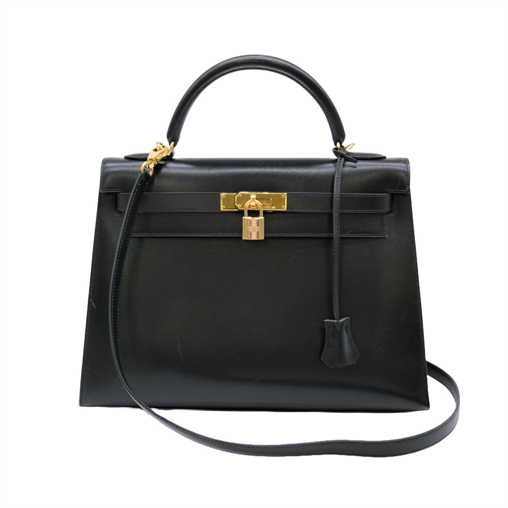 Introducing the Hermes Kelly 32 handbag, an epitome of sophistication and luxury designed for women. Crafted from smooth and luxurious box calf leather in classic black, this handbag features Hermes' iconic structured silhouette and signature turn-lock closure. The Kelly 32 is renowned for its timeless elegance and exceptional craftsmanship, making it a coveted accessory for the discerning fashion enthusiast.
