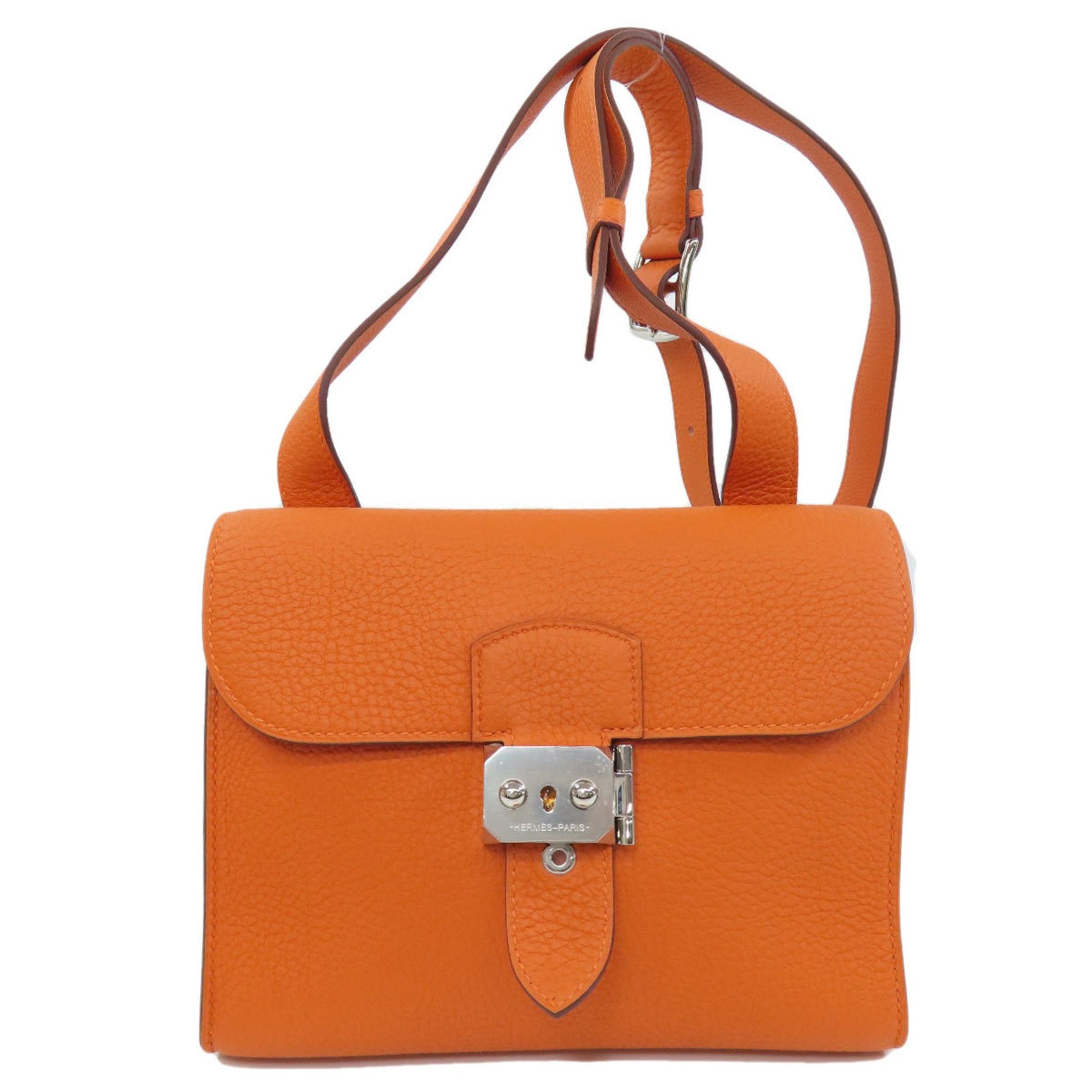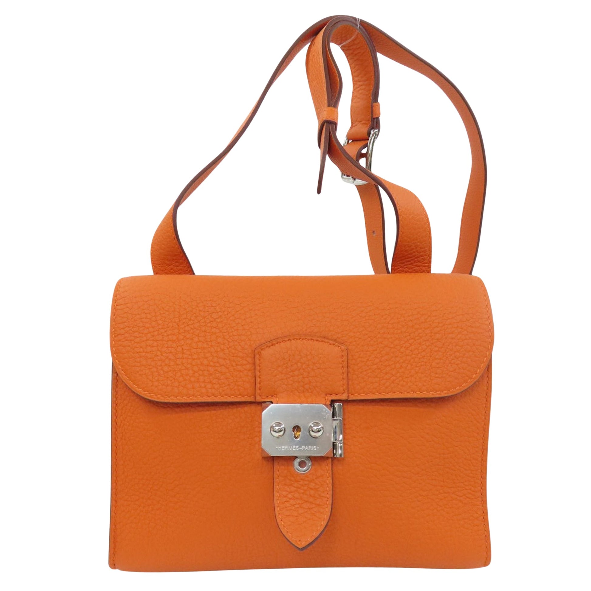 The Hermes Sac à Dépêches shoulder bag for women is an exquisite accessory crafted from Taurillon Clemence leather in a vibrant orange color. Known for its durability and elegant design, this bag combines both style and functionality.