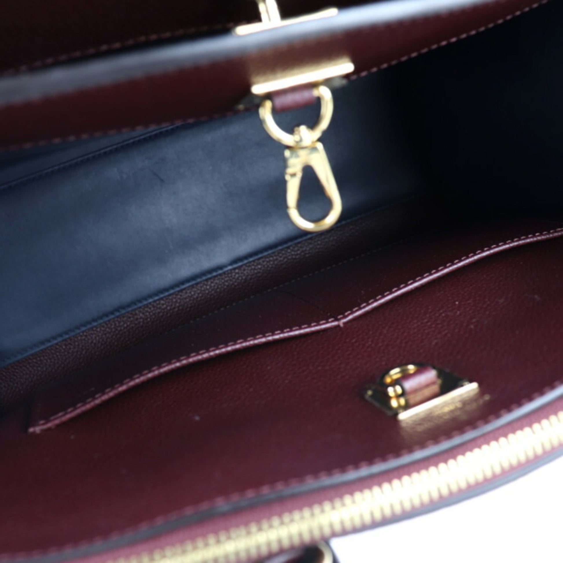 Overall, there are a few minor scratches on the leather exterior, with only small spots visible inside.